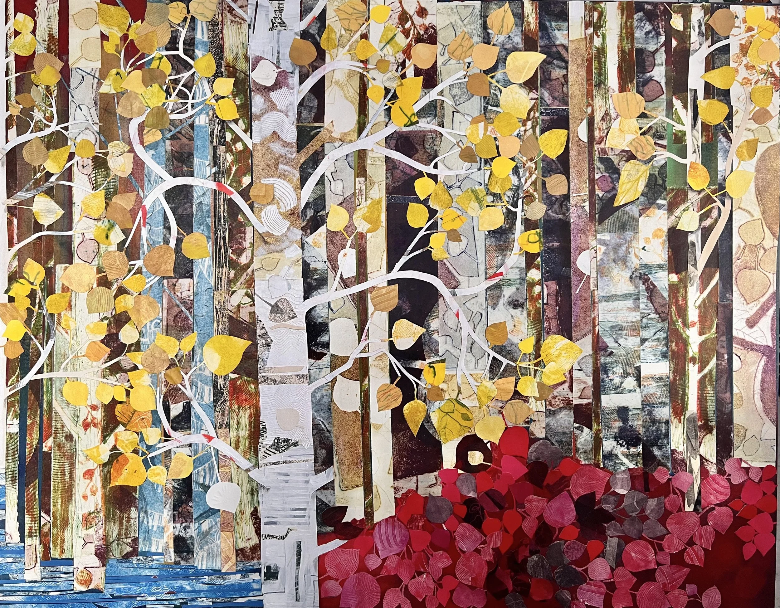 The Seasons, a mixed-media artwork commissioned for the hospice center living room at a Montana hospital.