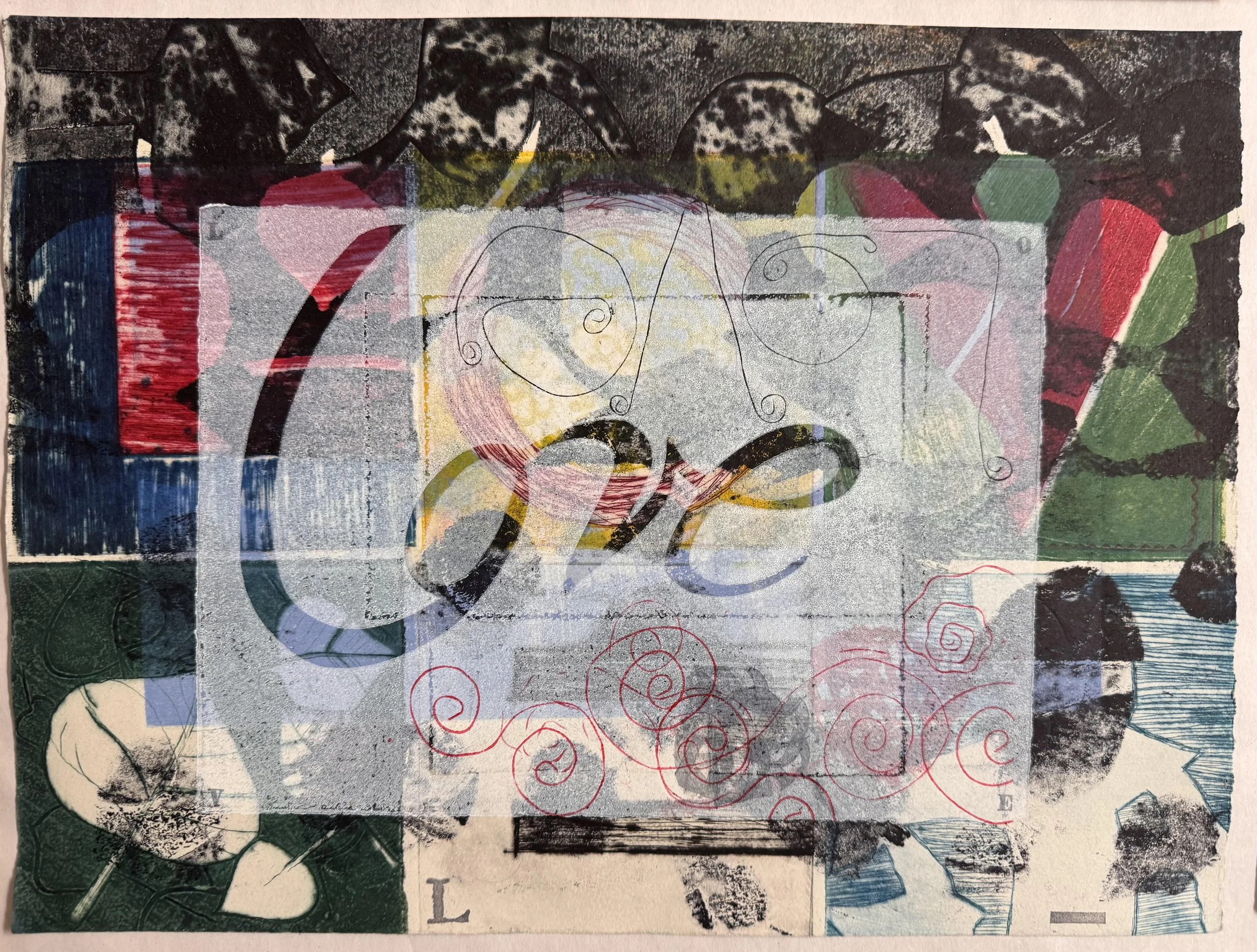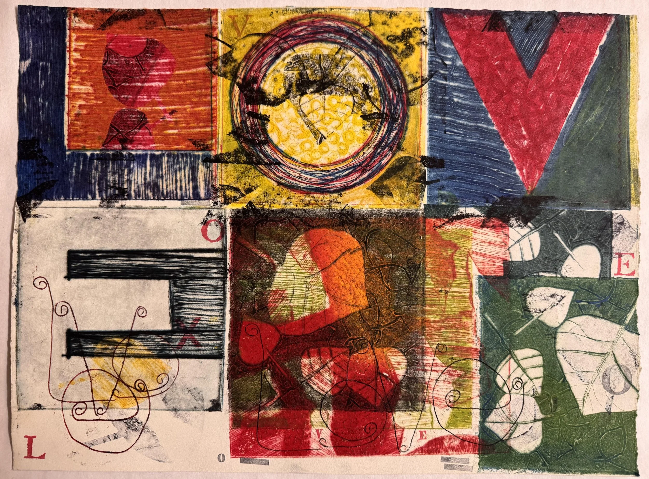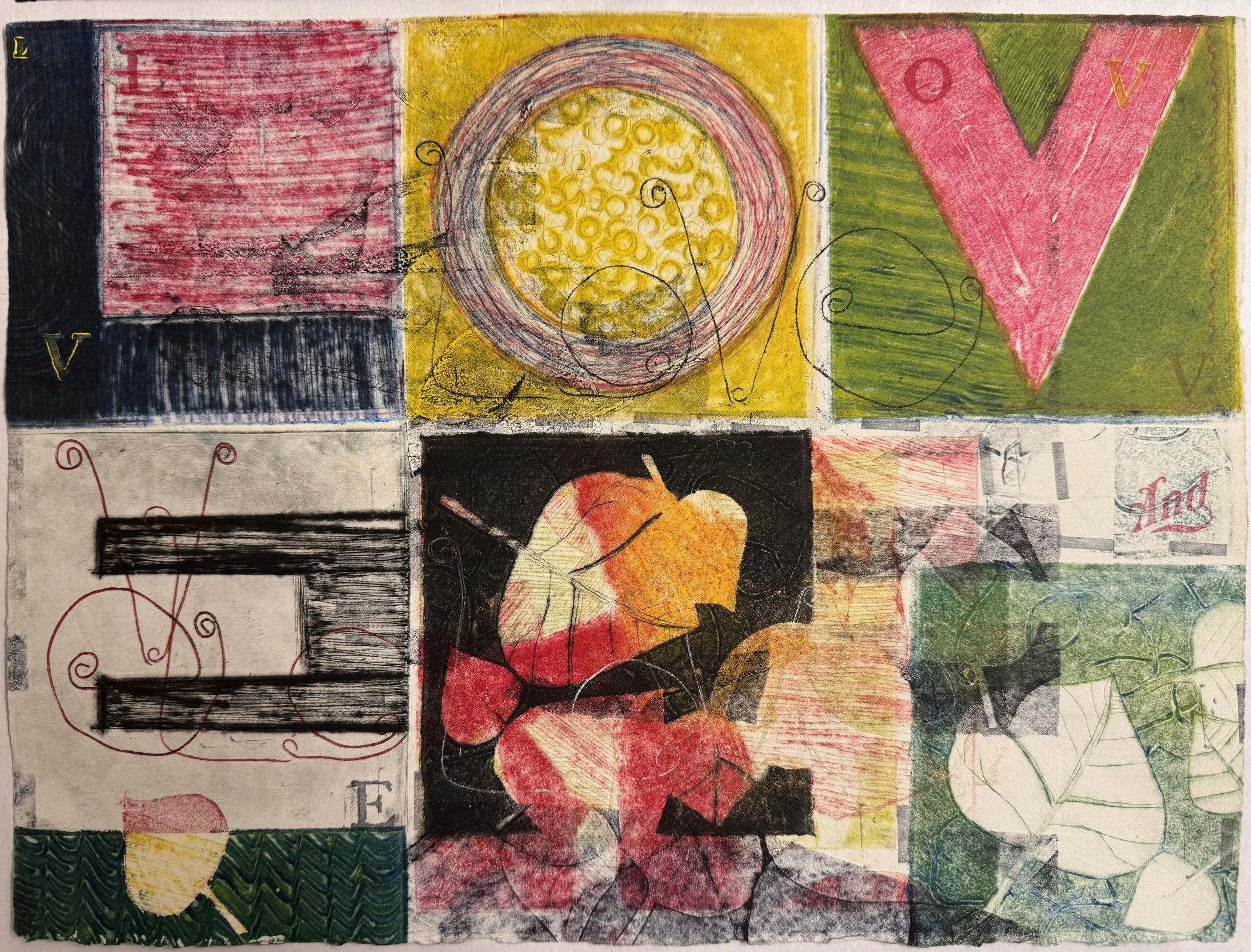 LOVE and…. Mixed-(Multi) Process Monoprint, 12 x 15 inches, $950 unframed