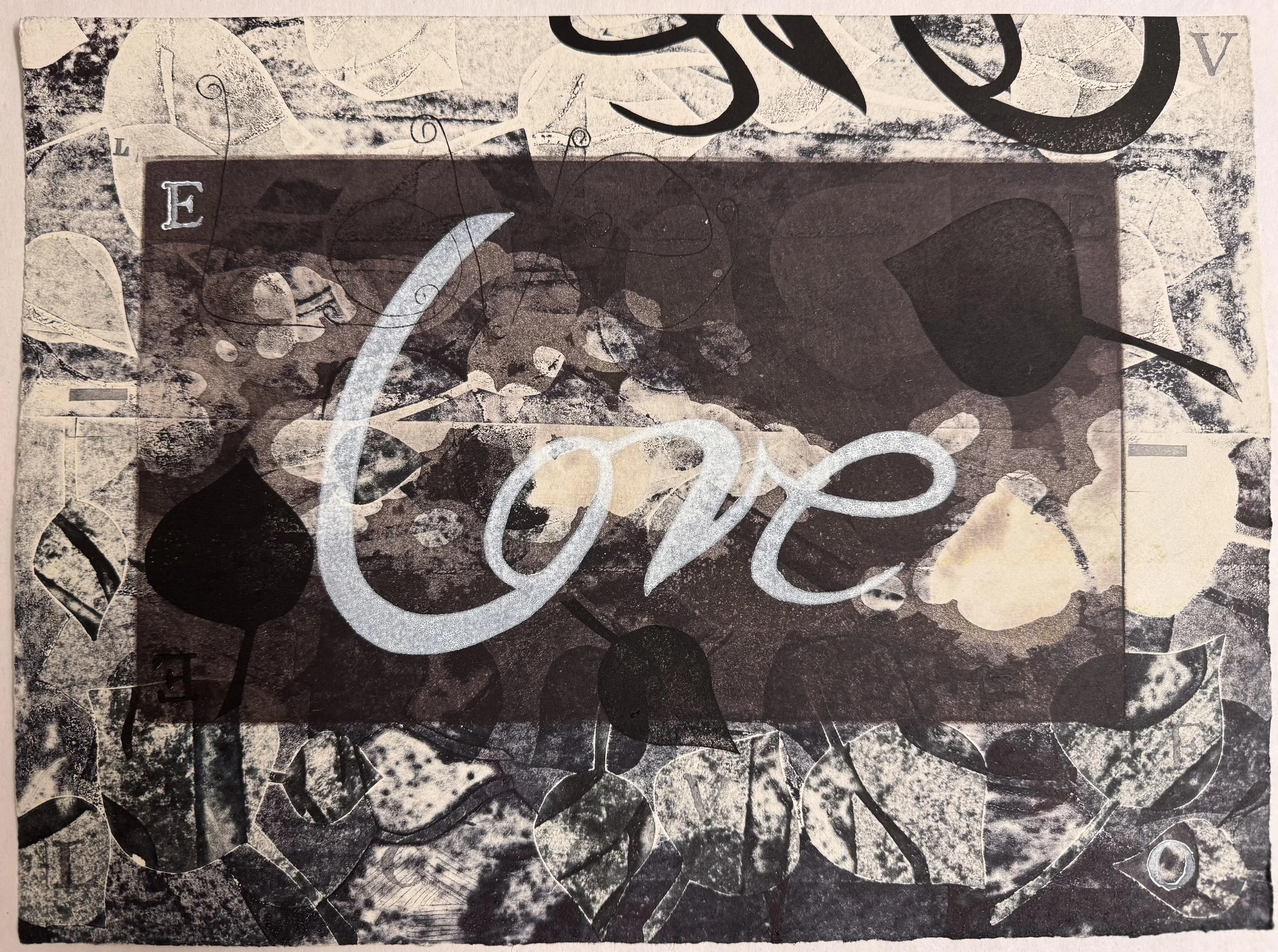 Stark Contrast…LOVE, Mixed-(Multi) Process Monoprint, 12 x 15 inches, $950 unframed